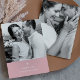 Simple and chic blush pink minimalist Valentine greeting card features a sweet white heart with your personalized name and two custom photos.