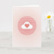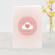 This greeting card shows a white cloud sitting in the middle of the design, holding a coral-pink heart like it’s being gently protected. The cloud has a soft rounded shape and a small shadow underneath, so it looks like it’s floating. Behind it is a large circle with thin horizontal stripes in a muted rose color, adding a quiet bit of texture. The background fades through blush and peach tones, with light rings spreading outward like a calm glow. There’s no text on the front, which makes the heart-and-cloud image feel like the whole message. The simple shapes and warm pink colors make it feel caring and reassuring, whether it’s for a partner or a close friend 🥰. It’s the kind of card that says “I’m here for you” without needing extra words ❤️, and it’s a sweet way to share Valentine’s Day sentiments.