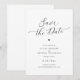 This modern and elegant save the date card features "Save the Date" in a stylish, swirly calligraphy script, offering a timeless black and white design. Simple yet sophisticated, this classic card beautifully sets the tone for your wedding day, perfect for couples looking for a sleek and refined way to announce their special date.