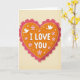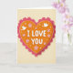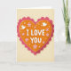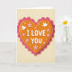 This greeting card shows a large heart centered on a pale cream background, with a warm orange middle that draws your eye right in. Across the center of the heart, the words “I LOVE YOU” appear in simple white all-caps letters, easy to read and placed front and center. The heart is outlined with a scalloped fuchsia edge, plus a neat row of smaller light-pink dots that feels like careful decoration. Inside the orange area, two white doves with wings spread face each other as they fly toward the middle, giving the scene a calm, loving feeling. Small pink flowers sit around them, along with little white star shapes and tiny dot sprinkles that add a gentle sense of celebration. The overall look is sweet and steady, like a clear reminder that love can be simple and true 🥰. It’s a meaningful card to give when you want your feelings to be obvious without needing a lot of extra words ❤️. Hope it helps you share Valentine’s Day sentiments with someone you care about.