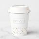 This paper cup features a simple logo and text template with a cute gold heart pattern. Add your logo and customize the text with your information. You can use this personalized cup at your business place, shops, company event or, etc.