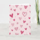 This design shows a soft pink background covered with many red hearts, scattered all over like a simple pattern. The hearts come in different sizes and angles, so your eye keeps moving around the card. Some hearts are just outlined, while others have a scribbly fill that looks like it was drawn with a crayon or marker. Small red dots sit between the hearts and add a little extra sparkle to the space. There’s no text on the front, so the hearts do all the talking and leave room for your own words inside. It feels meaningful because it’s straightforward and sweet, like saying “I care about you” without needing a big speech 🥰. It works well for romance or close friendship, and it’s an easy way to share Valentine’s Day feelings ❤️.