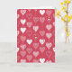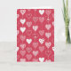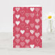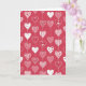 This greeting card shows a repeating pattern of hearts arranged in neat vertical rows on a deep red background. Each row is linked by thin white lines, like a simple hanging garland running from top to bottom. The hearts come in pink, white, and darker red, and the mix of colors keeps the pattern interesting without feeling busy. Some hearts have polka dots, some have stripes, and others hold tiny hearts inside, giving the design a sweet, caring feel 🥰. The white outlines around the hearts make them stand out clearly and add a soft, drawn look. There isn’t any text on the front, so the design leaves plenty of room for your own words inside ❤️. It feels meaningful because it’s all about steady, everyday love—perfect for a partner, close friend, or someone you simply care about. Hope it helps you share your Valentine’s Day feelings in a warm, honest way.