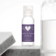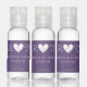 This sweet set of travel bottles features a set of initials with a heart in between them along with space for your names and a date on a purple background, making it a perfect wedding favor or a practical little keepsake as part of a gift bag.