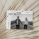 Modern and stylish save the date card featuring a modern typography text that says "save the date." One photo in the font and one on the back. The background is white.