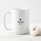 Custom Mom simple classic modern minimalist red heart coffee cup for your mother or a new mom - with personalized year established. Keep it simple or make your own unique changes to the heart or background color, typography, names, dates.