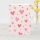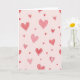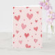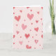 This greeting card shows a blush-pink background sprinkled with heart shapes all over the front. The hearts come in different sizes and styles, drifting across the card like a gentle scatter. Some hearts are solid shades of pink and red, while others have simple outlines in deeper red or white. A few hearts include small dots, which adds a sweet, lighthearted detail. There’s no main character or scene—just a calm field of hearts that feels cozy and affectionate 🥰. The soft pink-to-red colors make it feel romantic without being too intense, like a quiet reminder that you care ❤️. There isn’t any text on the front, so your message inside gets to be the focus. It’s an easy card to give when you want to share Valentine’s Day feelings in a sincere, friendly way.