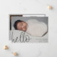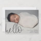 This is a chic, modern and simple baby announcement template. On the front is space for your favorite full sized photo with elegant 'hello' calligraphy overlay. On the reverse there is space for a further 2 photos and a personal message. Customise with ease for that unique keepsake for family and friends to enjoy for years to come.