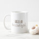 Simple Hello Beautiful Typography Coffee Mug. Art from Bohemian Girl.