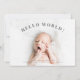 A simple modern birth announcement where a full bleed photo of your little one takes center stage. The design features a curved header greeting in gray that reads "Hello World!" - this can be amended. The name and birth details of your new addition are at the bottom. The reverse of the card features a preppy gray and white polka dot pattern.
