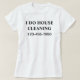 Simple house cleaning work shirts with the words I DO HOUSE CLEANING in bold letters and contact number that stands out so it's easy to read and remember. Designed as a work shirt for someone who cleans homes or supply one to every employee as uniform tops on a budget.