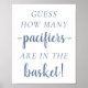 Counting Game Table Signage: Simple "Guess how many" (pacifiers, candies, socks, etc) baby shower or gender reveal party table sign featuring a fun, casual hand-lettered script. The classic design includes a modern handlettered quote typography overlay. For other colors or matching products, please visit the JustFharryn Zazzle store, or contact the designer, c/o Fharryn@yahoo.com All rights reserved. #bohochic #zazzlemade