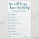"How Well Do You Know Daddy?" Who best knows the father-to-be? Simple keepsake baby shower or gender reveal party game featuring a fun, casual hand-lettered script. The classic design includes a modern handlettered quote typography overlay. For other colors or matching products, please visit the JustFharryn Zazzle store, or contact the designer, c/o Fharryn@yahoo.com All rights reserved. #bohochic #zazzlemade"