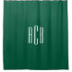 Modern three letter monogram design in white on solid hunter green shower curtain.