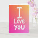 This card features the simple words “I Love You” as the main focus, centered on the front. The letters are white and look slightly raised, with a soft outline and fine diagonal lines filling each letter for extra texture. Behind the text is a smooth color fade that starts with bright orange at the top, shifts through warm pink in the middle, and ends in deep fuchsia at the bottom. The overall look feels warm and close, like a hug that says what you might not always say out loud. Because the message is so direct, it works for a partner, a close friend, or anyone you care about ❤️. The lettering is easy to read and stands out clearly against the colorful background, so the words land right away. It’s a meaningful choice when you want to keep things simple but still make someone feel truly loved 🥰. Hope it helps you share your Valentine’s Day feelings with someone special.