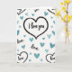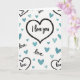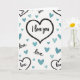 This card shows a large heart in the center with a black outline and a dotted edge that adds a sweet little detail. Inside the heart, the words “I love you” are written in black, with a loose, flowing letter style, placed right in the middle where your eyes land first. The background is white and sprinkled with many smaller hearts in soft blue and turquoise shades, each with a faint shadow that makes them feel slightly raised. Along the edges, you can see parts of other big hearts and cut-off words like “love” and “ake,” hinting that the pattern continues beyond what you can see. The overall look feels light and tender, like a quiet reminder that love can be simple and steady ❤️. It’s meaningful to give because it says what you feel without needing a lot of extra words, whether it’s for a partner or someone you care about 🥰. Share it as a gentle way to pass along Valentine’s Day feelings to someone special.