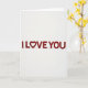 This greeting card shows the message “I ❤️ YOU” stretched across the center in a straight line. The letters are a deep ruby red with a glittery sparkle, and the heart symbol sits between “I” and “YOU” like the word “love.” A thin red thread runs through the letters, tying the whole message together and adding a sweet, connected feel. Each letter has tiny red dots on top, giving it extra texture and a little handmade look without being fussy. The background is plain white, so the red message stands out right away and feels easy to read. The text looks like chunky cutout letters rather than a fancy letter style, and it sits right across the middle of the front. It’s a simple way to say something big, which makes it meaningful to give to a partner or a close friend 🥰❤️. Hope it helps you share Valentine’s Day feelings with someone you care about.