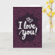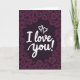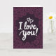 This card features the words “I love you!” in flowing white lettering right in the center. Above the “I,” there are two small white outline hearts that look lightly drawn, adding a sweet touch 🥰. The background is a very dark aubergine, almost like deep purple-black, which makes the white message stand out. Around the edges, a thick border of roses frames the message, with dark linework and petals filled in plum and deep magenta tones. The roses vary a bit in size and placement, so the border feels full and natural rather than perfectly even. With the strong contrast and the soft floral frame, the card feels romantic, steady, and sincere ❤️. It’s a meaningful choice when you want your feelings to be clear without needing a lot of extra words. Hope it helps you share Valentine’s Day sentiments with someone special.