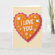 This greeting card shows a large stylized heart in pumpkin-orange that looks a bit like frosted icing. A fuchsia-pink scalloped border surrounds the heart, giving it a layered look and a soft, rounded edge. In the center, the words “I LOVE YOU” appear in white, thick uppercase letters that are easy to read. Two white doves sit on either side of the message, facing inward with calm expressions, which adds a gentle, caring feel. Around the heart you’ll notice small pink-and-white flowers, tiny stars, and scattered dots like confetti, all floating on a pale beige background. The light shading and small shadows make the heart and border feel slightly raised without being too busy. It feels meaningful to give because the simple message and peaceful doves say “I care about you” in a steady, honest way 🥰❤️. Hope it helps you share your Valentine’s Day feelings with someone you love.