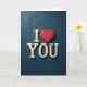 This card shows the message “I ❤️ YOU” centered on a dark, textured blue background. The “I” and “YOU” are raised letters in a soft beige-gold color, with a slightly rough surface that looks like it has real grain. Each letter casts a gentle shadow, so the words feel solid and close. In the middle, a bright red heart stands in for the word “love,” and it has a more uneven, worn texture that makes it feel honest and human ❤️. The lighting makes the heart and letters look almost sculpted, like you could reach out and touch them. The text looks like simple, sturdy capital letters, and the heart sits right between the two words to pull your eye in. It’s a meaningful card to give because it says everything clearly while still feeling tender and thoughtful 🥰. Hope it helps you share your Valentine’s Day sentiments with someone you care about.