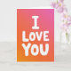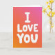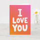 This card centers the message “I LOVE YOU” in large, rounded white letters that are easy to read. Tiny red heart speckles are scattered inside each letter, adding a sweet, cozy detail. The background fades from magenta-pink at the top down into a warm orange near the bottom, like a soft sunset glow. The simple layout keeps your attention on the words, while the hearts make the message feel extra caring ❤️. The smooth curves of the lettering give it a friendly, gentle look, like a hug in text form. The bright white letters stand out clearly against the pink-to-orange background, so the message feels direct and honest. It’s a meaningful card to give when you want someone to feel loved without needing a long note 🥰. Share it to help pass along Valentine’s Day feelings in a simple, heartfelt way.