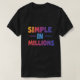 The image shows a flat vector design of a t-shirt with the phrase "Simple in Millions" written in a bold, colorful font. The text is large and centered on the shirt, and it is surrounded by a variety of colorful shapes and patterns. The overall design is playful and eye-catching, and it would be sure to stand out on a t-shirt.