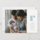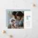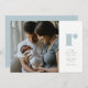 A simple introduction for your new little one featuring a single photo, a blue large initial, room for stats and parents' names along with a dotted coordinating backer. Want a different color? Click "customize" to adjust.