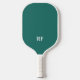 This modern pickleball paddle design features a ivy green background, with your initials in bold white text for a look that is simple and stylish, yet professional.