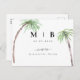 Simple Tropical Palm Trees. Black Initials. Save the Date. Wedding. Swash. Postcard.