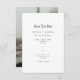 Announce your upcoming wedding with this simple inline gothic font save the date. Perfect for a romantic wedding, it combines modern minimalist design with elegant calligraphy and a photo on back . This black and white save the date offers a sleek and stylish way to share your special day, ideal for couples seeking a minimalist wedding announcement.