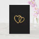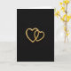 This greeting card shows two thin, gold heart outlines linked together near the center of a deep black background. The hearts overlap in one spot, creating a simple picture of two people staying close and connected. Soft light hits the curves, so the gold looks gently shiny with a few darker, warmer areas that give it depth. There aren’t any characters or extra objects, which keeps your attention on the hearts and what they stand for. The dark space around them makes the design feel calm and focused, like a quiet moment you want to hold onto. No text appears on the front, so the meaning comes through the image and whatever you choose to write inside. It feels meaningful to give because it can fit romance, friendship, or a steady kind of love that lasts 🥰❤️.