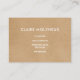 Simple kraft modern personalized business card template for you to customise. An elegant chic design that projects a confident professional image. White text on a Kraft paper background image.
