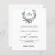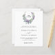 White background. A floral wreath made of lavender flowers and watercolored eucalyptus greenery. Personalize and add your monogram initials, names, and details. Black text.
