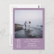 This light purple or lavender colored postcard is the perfect way to let your friends and family know about your upcoming wedding. Features a simple minimalist design with is artsy, modern, and elegant including your photo on a white background with white text containing all of the vital information.