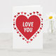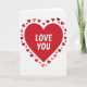 This card shows a large crimson-red heart centered on a bright white background. Inside the heart, the words “LOVE YOU” sit right in the middle in raised-looking white letters that feel simple and easy to read. Around the main heart, smaller hearts form a loose ring, with colors shifting from soft pink to deeper red. The little hearts vary in size, which adds a gentle sense of movement without distracting from the main message. The hearts have slight shading that makes them look a bit layered, like they’re sitting on top of the page. Overall, it feels direct and honest, making it a meaningful choice when you want to say something clear but still sweet 🥰. It’s a lovely way to share Valentine’s Day sentiments with someone you care about ❤️.