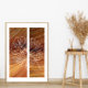 Boho style minimal leaf art with a deep, rich wood background to decorate any room in your home.