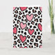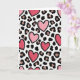 Designed with a repeating pattern of hearts and leopard spots on a creamy white background, this card feels fun and romantic at the same time ❤️. The hearts have uneven, drawn lines with a black outline and a lighter inner stroke that gives them a little depth. Some hearts are soft pastel pink, while others are deeper fuchsia or berry red, so the colors shift as you look across the card. Between the hearts, you’ll see leopard spots with irregular black outlines and a warm taupe fill, adding a slightly wild touch. There aren’t any characters or faces here, but the mix of sweet hearts and animal print still feels full of personality. There’s no text shown on the front, so the design does the talking and leaves plenty of room for your own words inside. It’s a meaningful choice for someone who likes romance with a little edge, whether that’s a partner or a close friend 🥰.