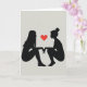 This design shows two women in black silhouette, facing each other in profile as they crouch gently on a soft gray background. Their outlines are sharp and simple, which makes their closeness feel quiet and focused. Between them floats a bright red heart, centered like the one strong point of color. Their hands angle toward the heart as if they’re both reaching for the same shared feeling, without needing to touch. One figure has long hair flowing down, while the other wears her hair in a bun, giving them distinct looks while still feeling connected. There isn’t any text on the front, so the picture carries the whole message on its own 🥰. It feels meaningful to give because it suggests love, trust, and being present with someone, whether that’s a partner or a close friend ❤️—a sweet way to share Valentine’s Day sentiments.