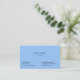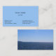 Simple, light blue personal business card, with a beach sea photography in the back.