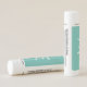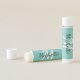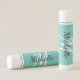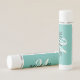 Lip balm with a light teal blue background and white simple monogram first initial and first name.