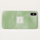 A simple subtle marble design Barely There iPhone X Case in light green with a modern white square badge that you can personalize by adding your monogrammed initial to. This is part of the Nile Green Subtle Marble Monogram Collection.