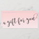 Elegant minimalist makeup gift certificate design which features your name and makeup text in a modern handwritten script lettering, gradient light pink background.