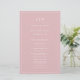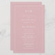 Simple Wedding Program featuring a modern yet elegant design with your two letter monogram at the top and your details surrounded by a thin border. All text is in white over a dusty rose pink background and may be changed in the design editing tool. The front has your order of ceremony and the back has your wedding party and thank you message. A chic and stylish design that is great for a minimalist couple. These cheap wedding programs are printed on sheets of paper for a budget friendly option.