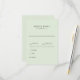 Simple Sage Wedding RSVP Response Card. Dinner Options.
