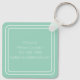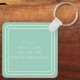 This simple and modern monogrammed keychain has a minimal monogram that you can personalize with your choice of initial on the front and contact information on the back in soft light teal and white.