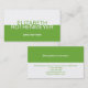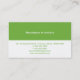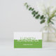 Simple and modern is the look on this business card. A business or personal name is dominant on the front of the card with the main contact information, either a phone number or website, knocking out of the lime green panel below. Add a description of services on the reverse at the top with all contact information printing below in green. Available in alternate colors.