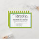 Plain white envelopes are included with paper invitations and will come to fit the invitation size you select. If you don’t need the envelopes, you may choose to not receive them by selecting the dropdown below "Envelopes" and choosing "None." If you’d like to have a design on your envelopes, you can browse all of these available envelopes to find the design that complements your Simple Lime Green Stripe Wedding Reply Card.