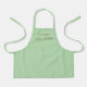 Great color and even though I ordered the kid size, it covers well enough to use during the holidays. I am not a big woman and prefer a shorter apron. I stand 5"6" and the length of the garment goes to mid-thigh. The tie straps fit well at my waist and even though there is no neck strap adjustment, the opening is plenty big enough. I am happy with the size and fit. I am sharing my apron with my 10 year old grandson, too! The color is vibrant and looks good, as shown on the website. The stitching looks strong and reinforced. Photographed is front side and back side of the apron, reinforced straps and coloring. My phone camera may not be the best at showing the details.
