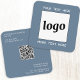 Simple minimalist logo and custom text with QR code for your business. Replace the logo, QR code and text with your own to customize, and change the background and text color to match your own branding.
