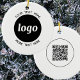 Simple minimalist logo and custom text with QR code to promote your business in the winter Holidays. Replace the logo, QR code and text with your own to customize, and change the background and text color to match your own branding.